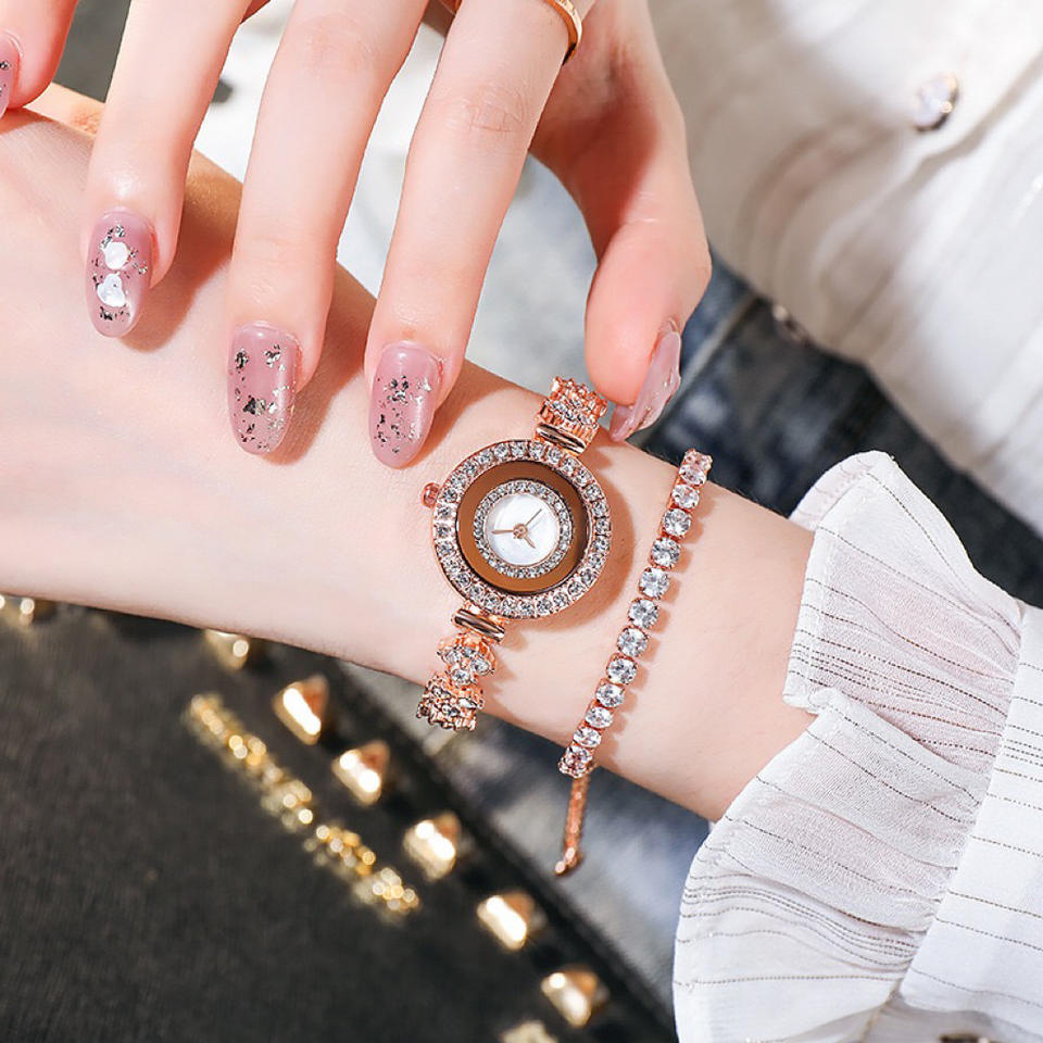 Reloj de cuarzo informal con nicho grabado personalizado y diamantes incrustados