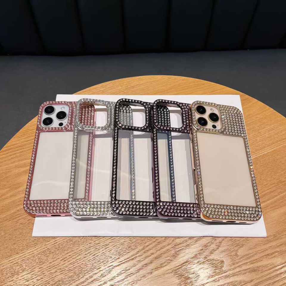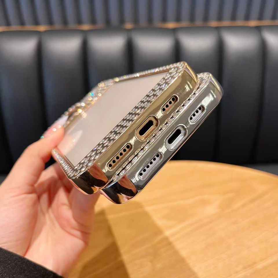 Funda con marco con incrustaciones de diamantes para Apple 17 Pro, funda protectora a prueba de golpes con diamantes de imitación electrochapados para iPhone 14, 15 y 16