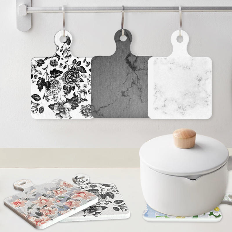 Alfombrilla de tierra de diatomeas con diseño floral rectangular, aislante del calor, para protección en la cocina, superficie antideslizante.