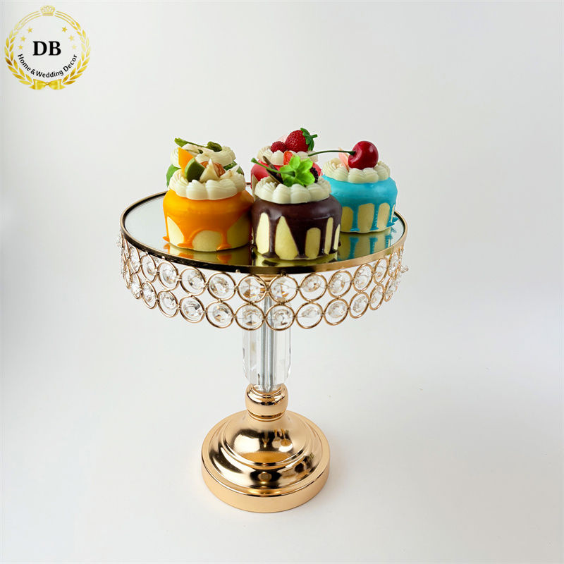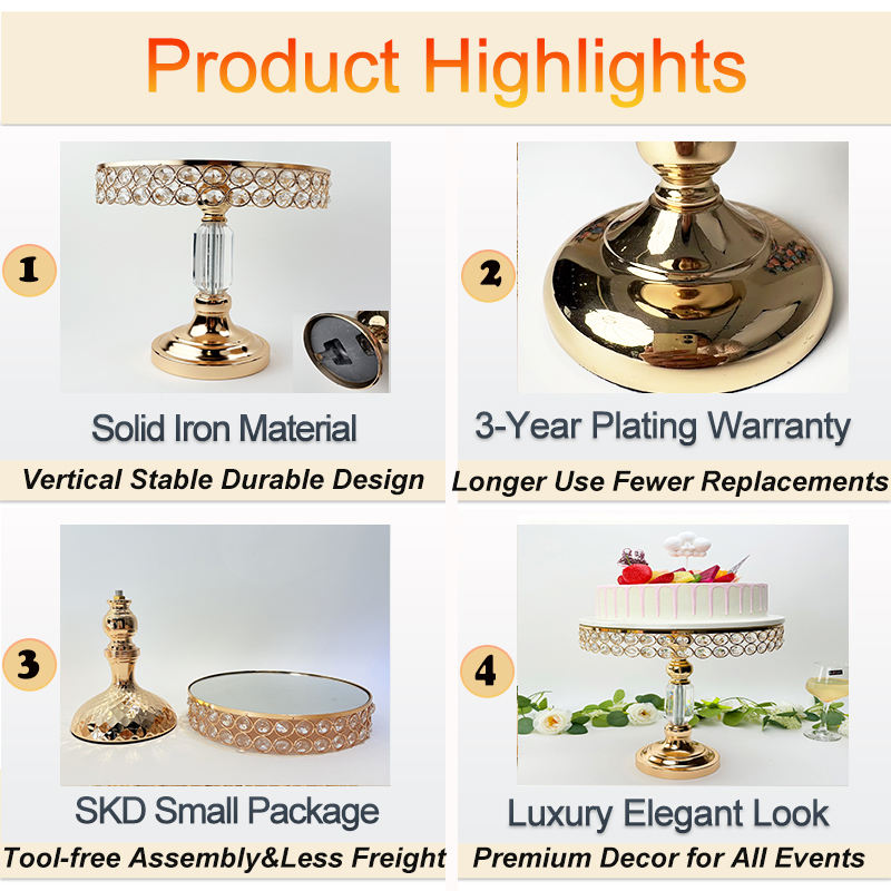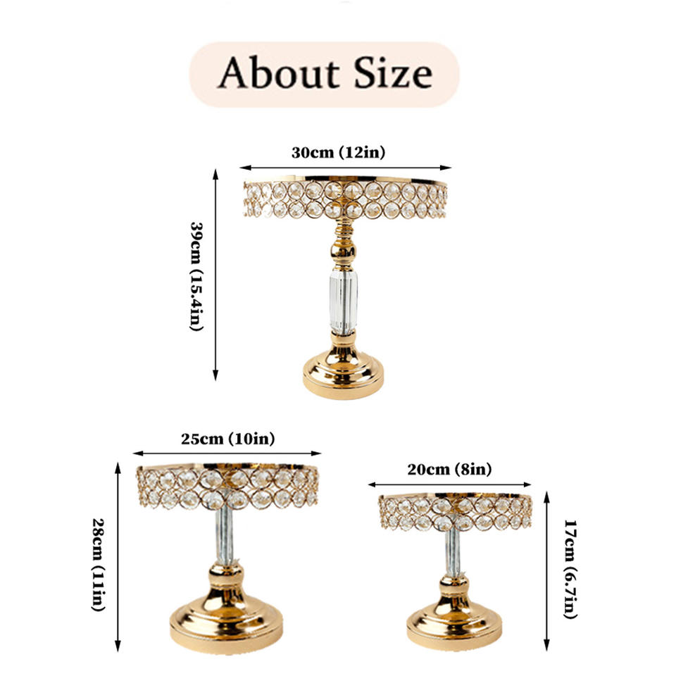 Bases para Pasteles para Eventos, Soporte para Tartas con Baño de Oro y Cristal, Juego de Soportes para Tartas para Decoración de Bodas