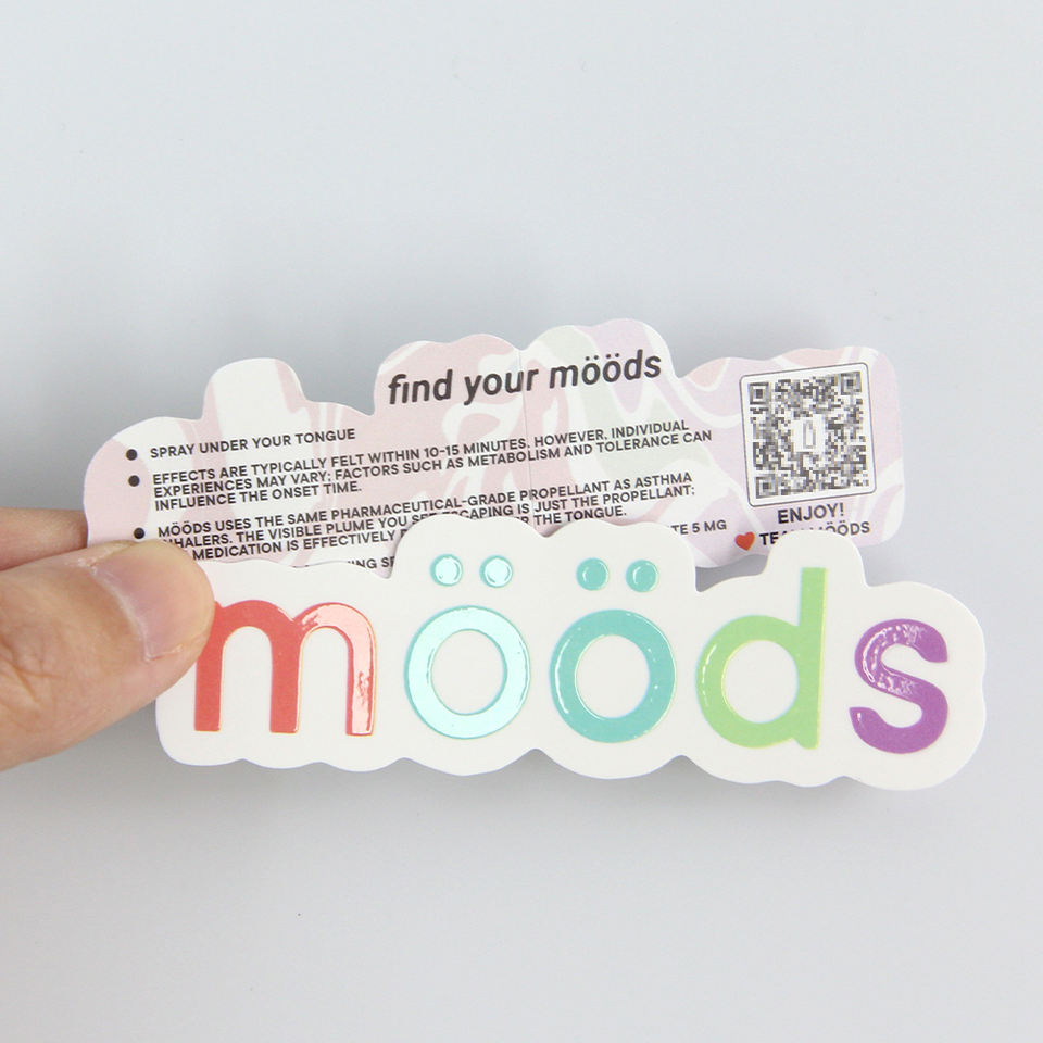 Pegatina holográfica de PVC con logotipo troquelado, impresión personalizada impermeable de dibujos animados en el forro de respaldo, pegatinas de regalo de marca de vinilo