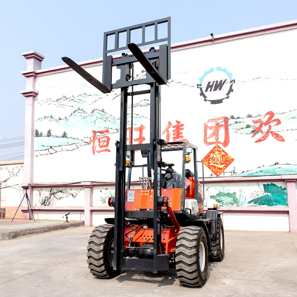 Montacargas 4x4 con Motor Diésel y Neumáticos Grandes para Obras de Construcción y Aserraderos