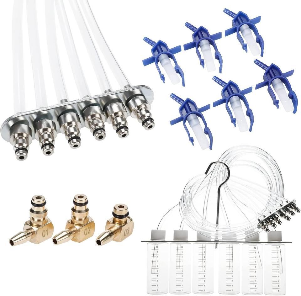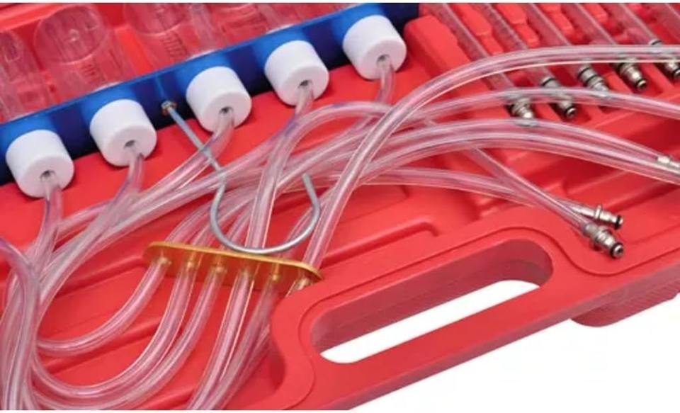 Kit de prueba de medidor de flujo de inyector diésel, herramientas de retorno de aceite de inyector de combustible con adaptador de riel común, juego de herramientas de diagnóstico