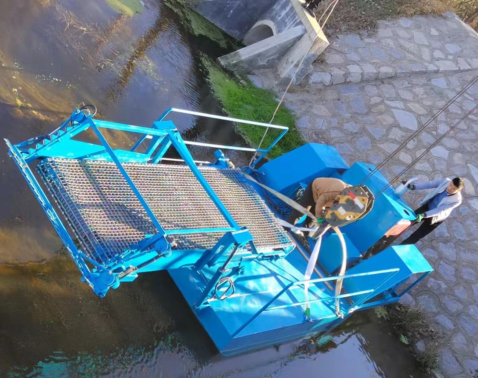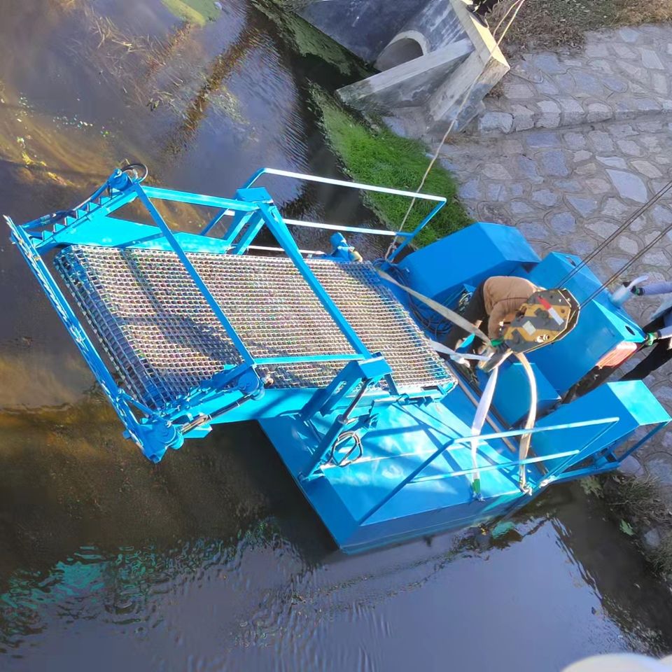 Planta acuática flotante de maleza automática con motor diésel, bote colector pequeño de lenteja de agua