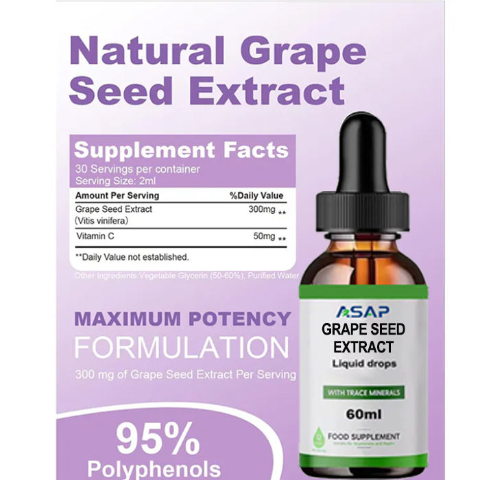 Suplemento dietético Extracto de semilla de uva líquido Natural Orgánico Uva fruta Gota de semilla
