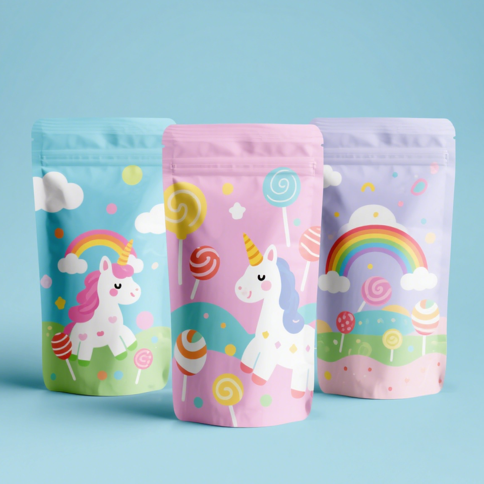 Diferentes diseños de bolsas de plástico personalizadas con cremallera resellable, bolsa de pie, contenedor grande para sándwich