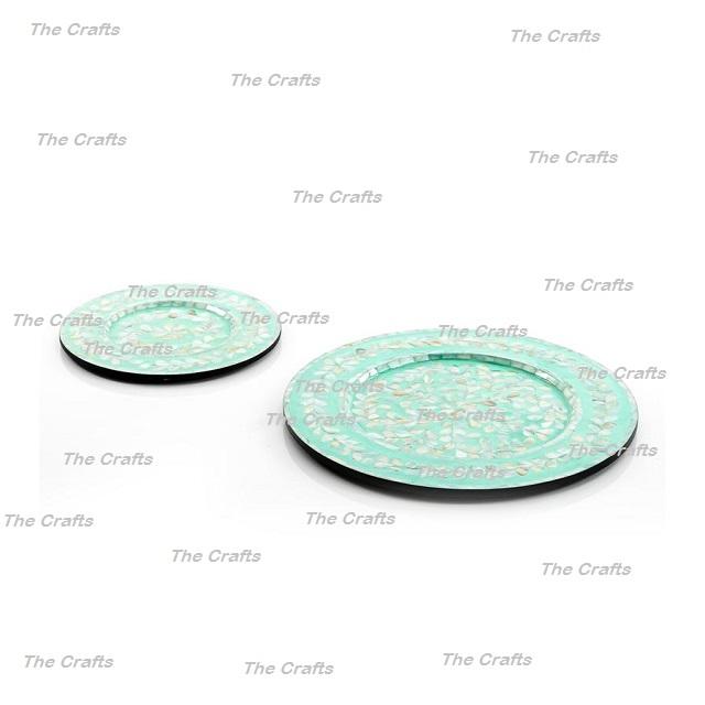 Juego de diferentes tamaños de dos placas inferiores en madera y placa de cargador de trabajo de nácar para uso en la cocina del hogar