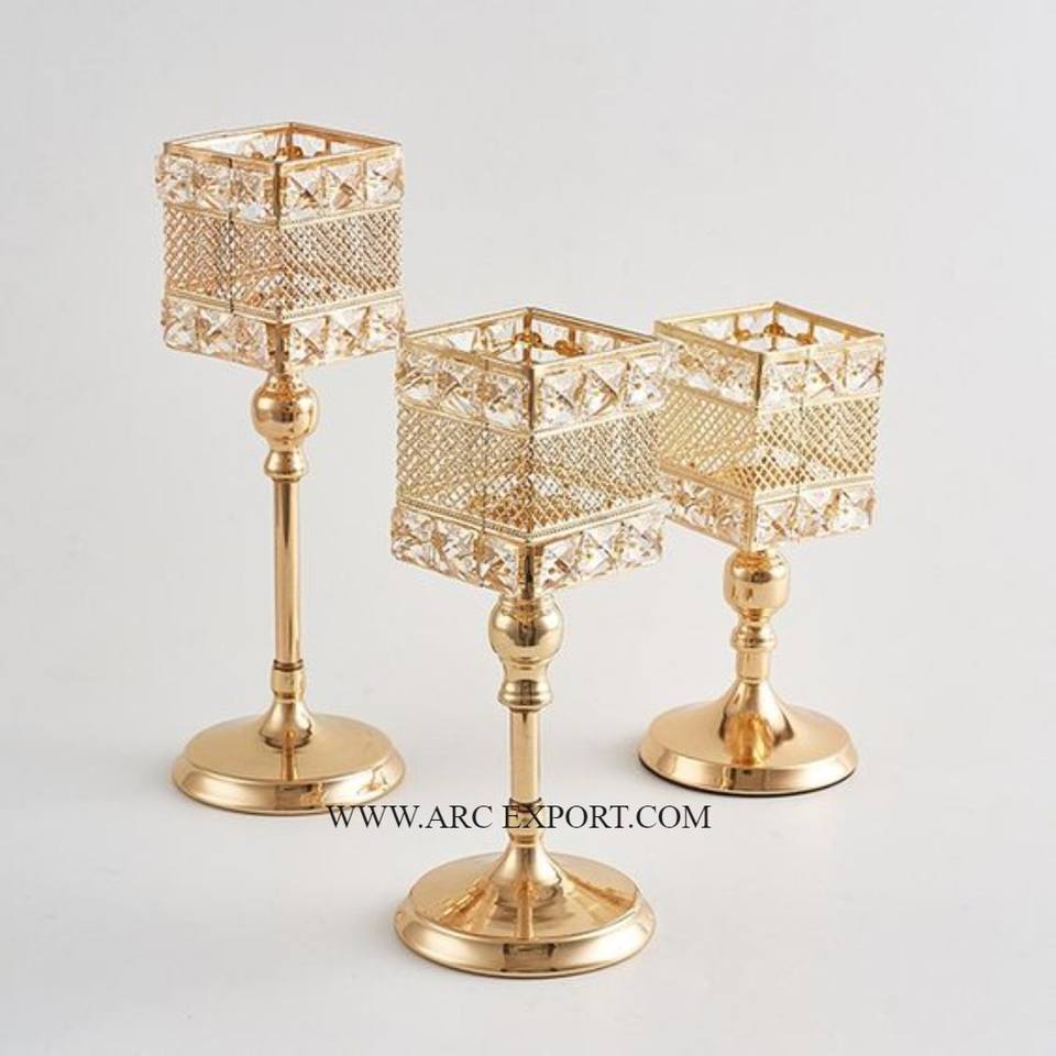 Candelabros votivos metálicos y de cristal de mesa de diferentes tamaños, Juego de 3 portavelas votivos de centro de mesa de lujo para decoración del hogar