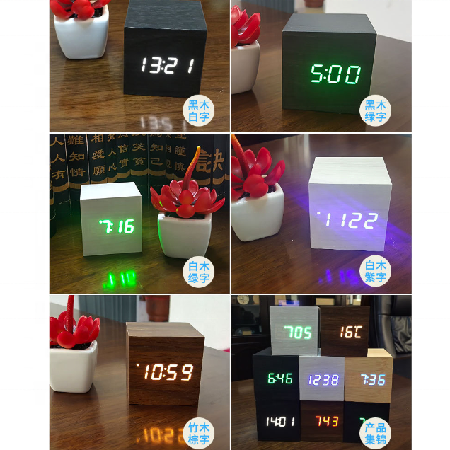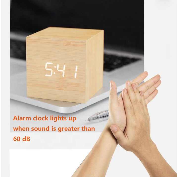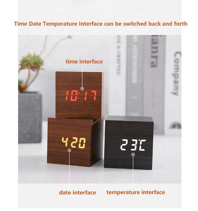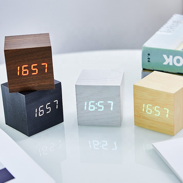 Reloj Despertador Digital de Madera con Luz LED, Mini Reloj Despertador Moderno en Forma de Cubo, Muestra la Hora, la Fecha y la Temperatura, para Dormitorio Infantil y Hogar