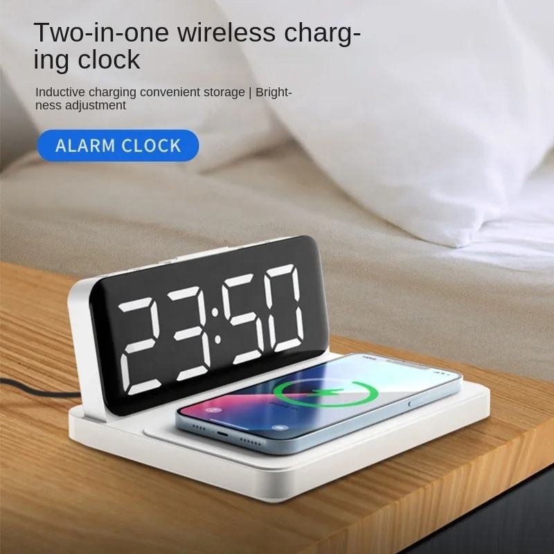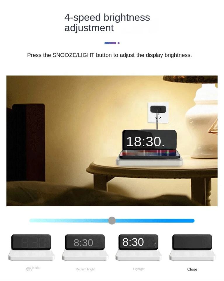 Despertador digital con carga inalámbrica rápida de 15W Despertador de carga inalámbrica de escritorio LED