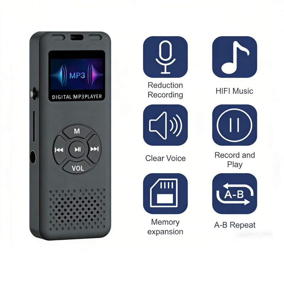 Grabadora de Audio/Voz Digital, Mini Reproductor MP3, Grabadora de Voz, Radio FM, Sonido HiFi, MP3 Portátil de Alta Capacidad de hasta 64 GB