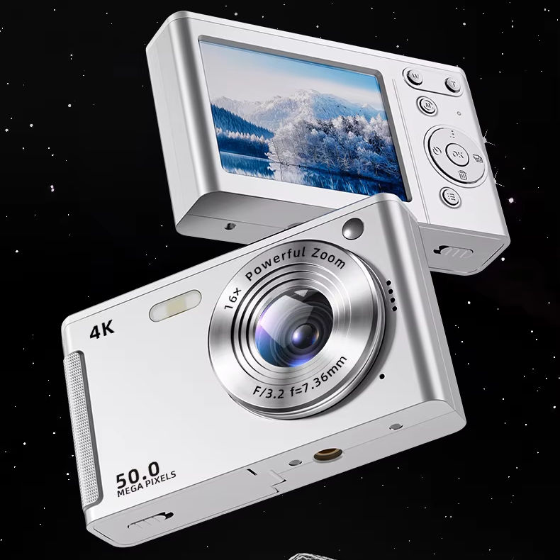 Cámara Digital con luz de relleno, cámara digital portátil para estudiantes de apuntar y disparar, 4K 50MP 16x Zoom Anti Shake AF Autofocus Camera