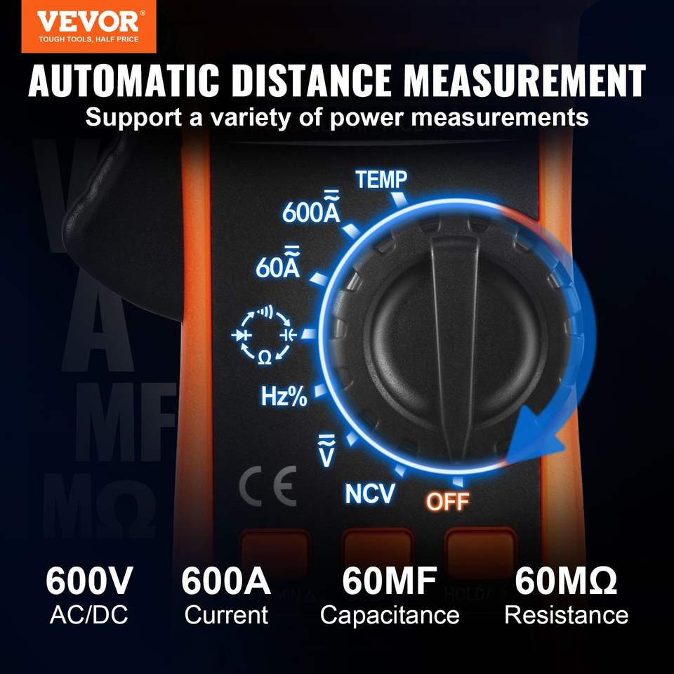 Multímetro digital de pinza amperimétrica con True RMS AC DC Volt Amp NCV Medición 6000 1000A para uso doméstico y profesional