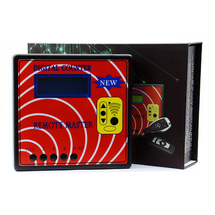 Programador de llaves y copiador de control remoto RF para puertas de garaje, con contador digital de frecuencia y función de regeneración de control remoto de código variable.