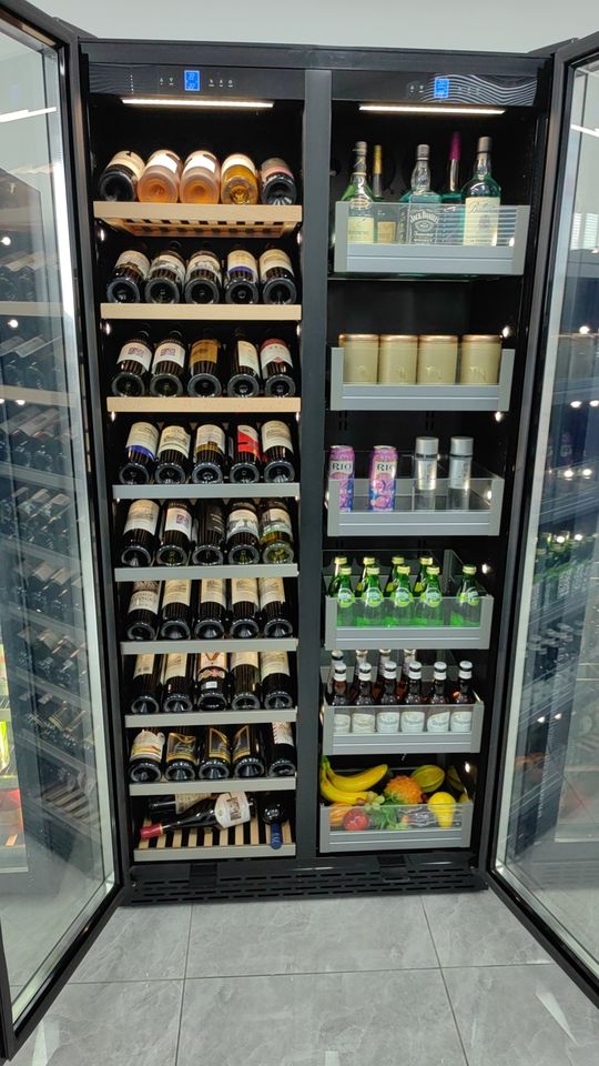 Característica:Temperatura dual de la zona, Respetuoso del medio ambiente, Puerta de vidrio aislada, Cerradura de seguridad, Espacio de almacenamiento multifuncional, Temperatura constante