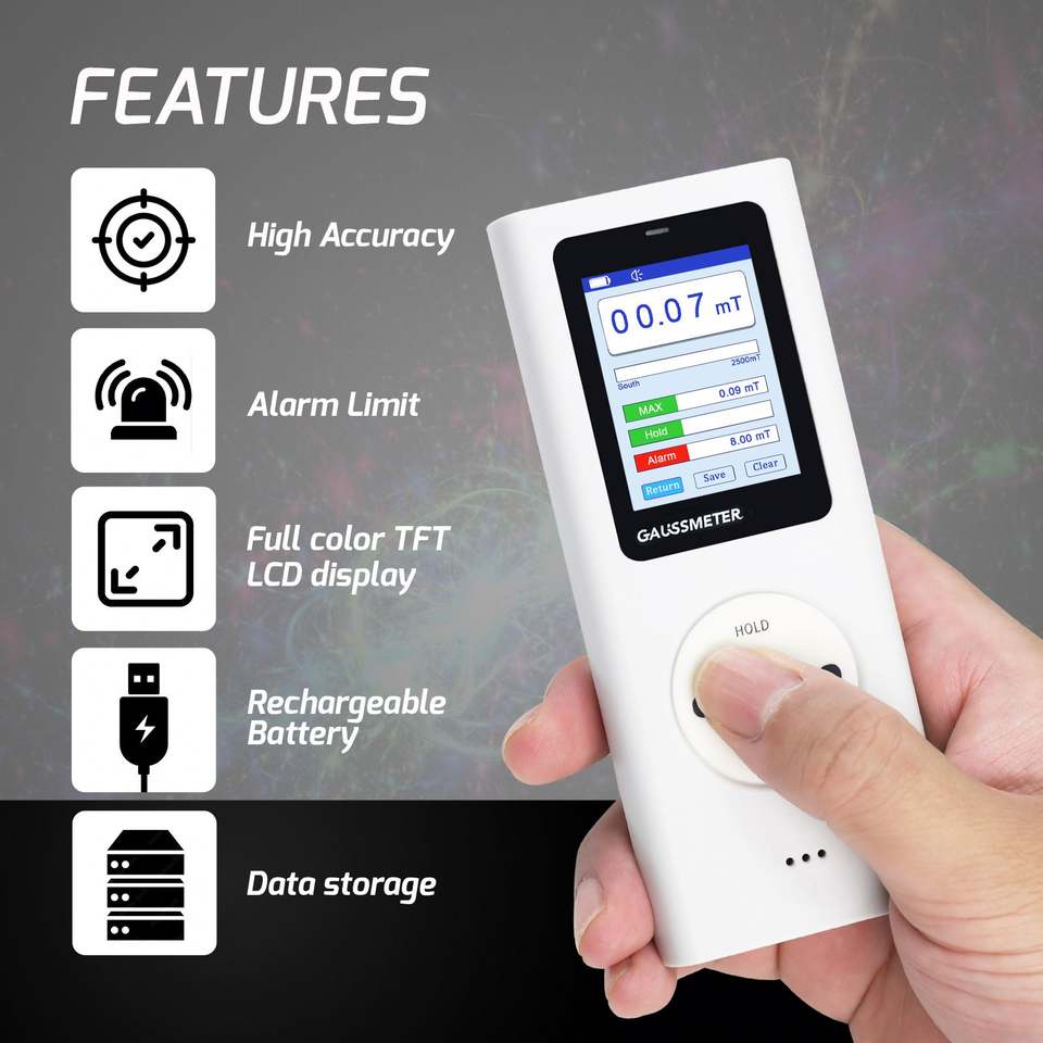 Medidor de Gauss Digital, Medidor de Tesla, Detector de Campo Magnético Portátil, Rango de 0~25k Gs, Pantalla a Color para Pruebas de Magnetismo