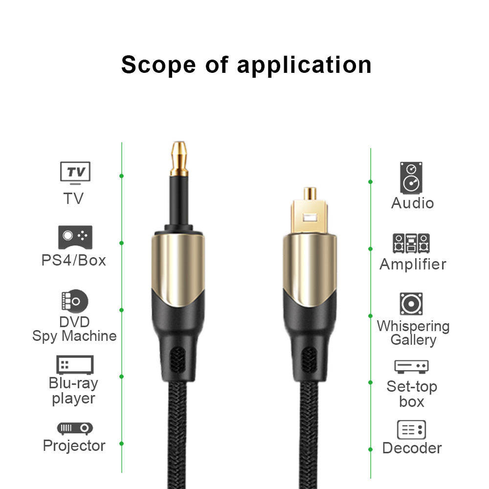 Cable de Audio Óptico Digital para Toslink, Cine en Casa, Fibra Óptica Toslink a Mini Conector de 3.5mm con Conectores Metálicos