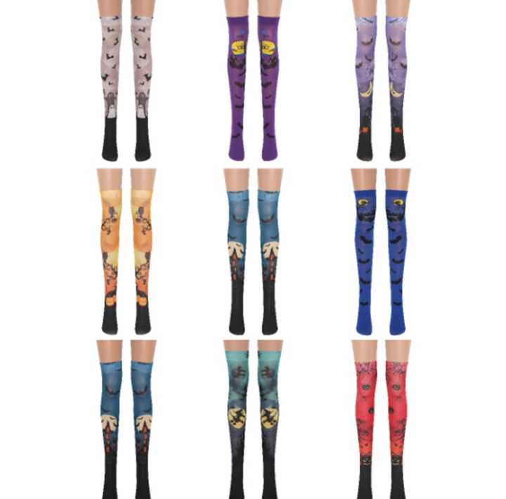Impresión Digital de Castle Dark Bat Witch Ghost Medias Evil Pumpkin Tights Lady Halloween Funny Party Calcetines 2022