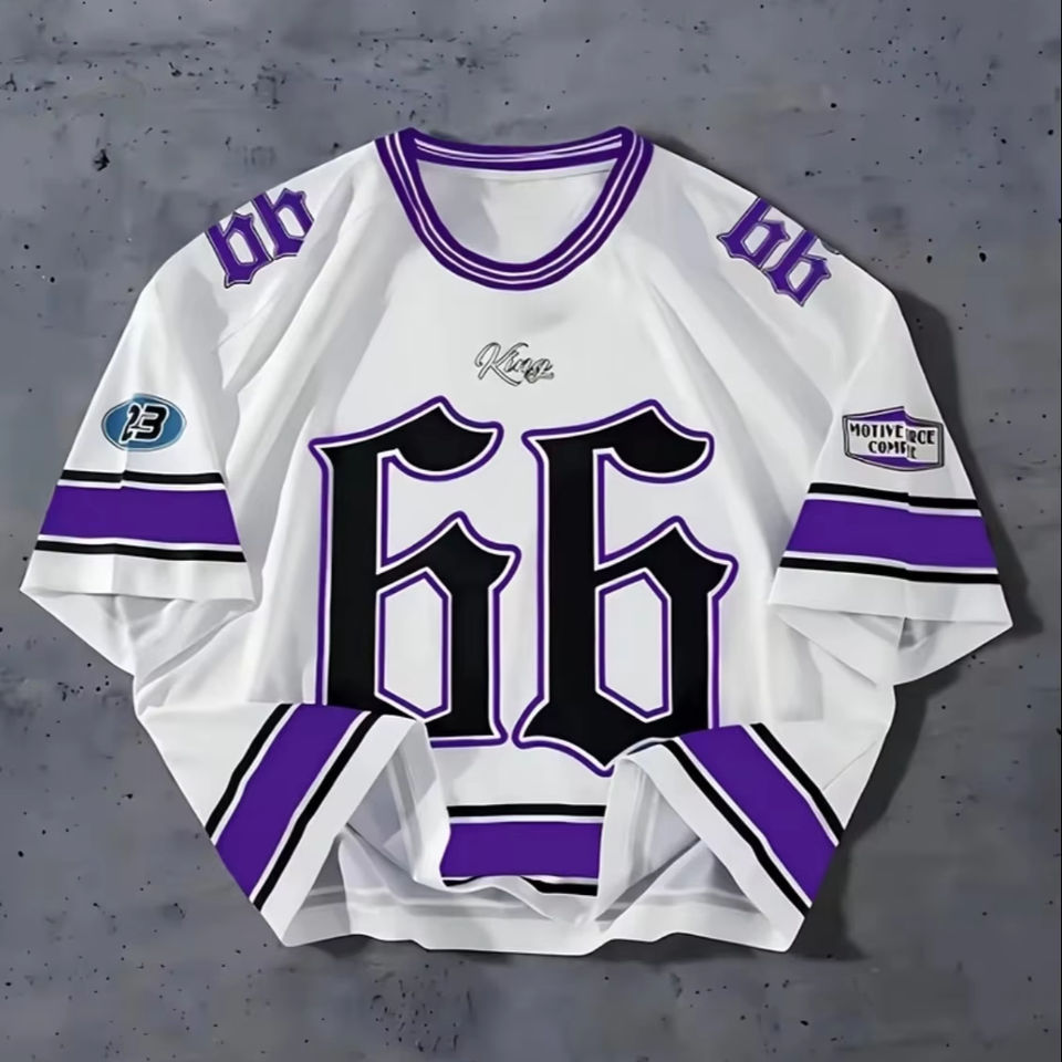Camiseta de poliéster tejido con estampado digital de icono de coche de carreras, estilo casual urbano, transpirable, ecológica y antipilling.
