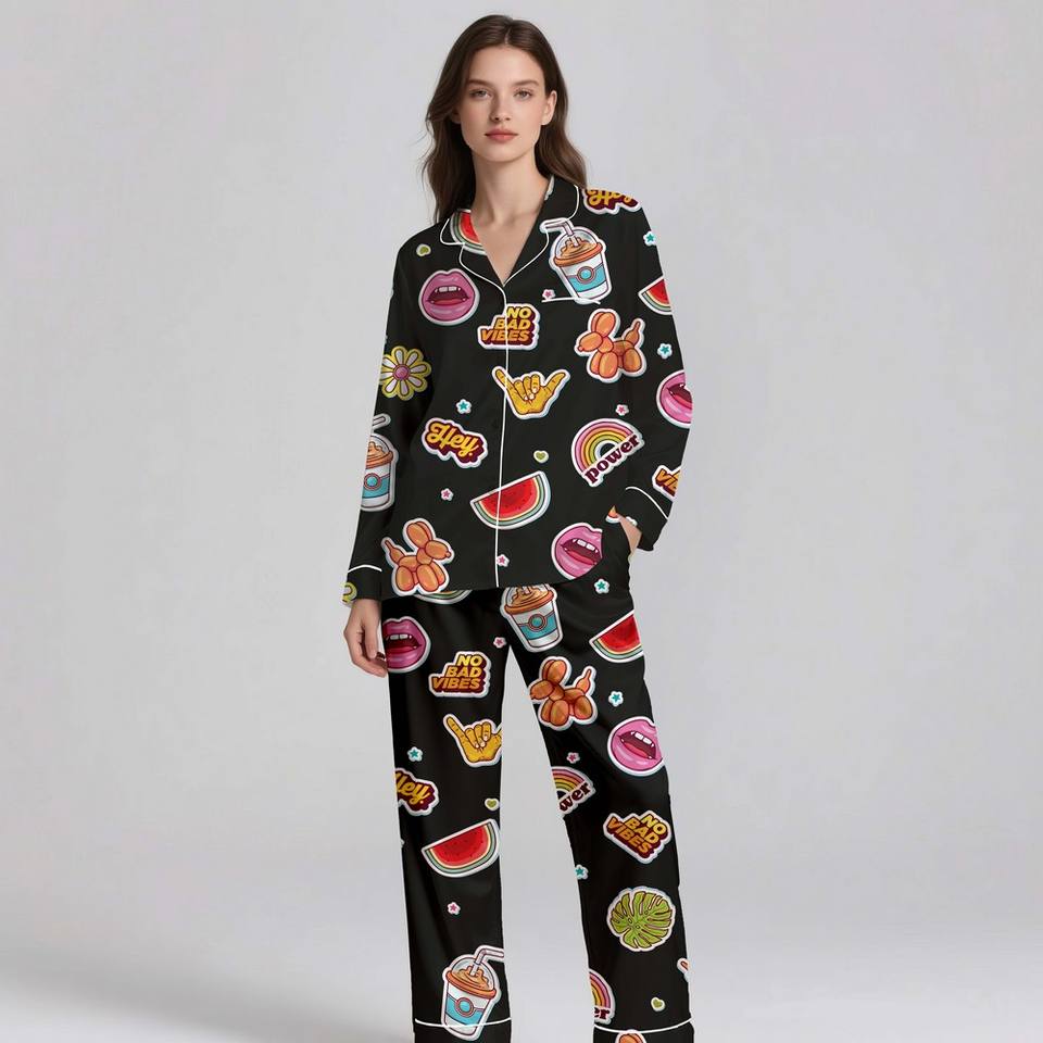 Pijamas de Seda Satén Premium con Estampado Digital, Transpirables y Suaves, Conjunto de Primavera/Verano para Adultos, Personalizable
