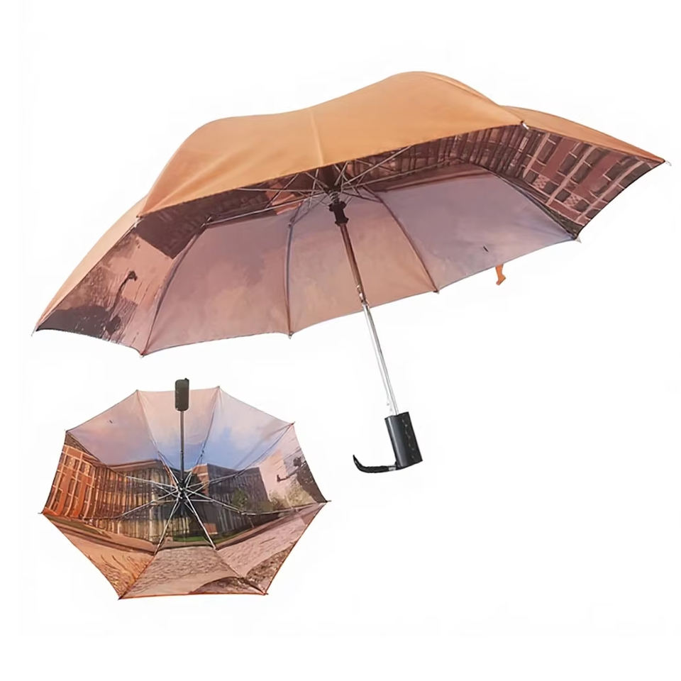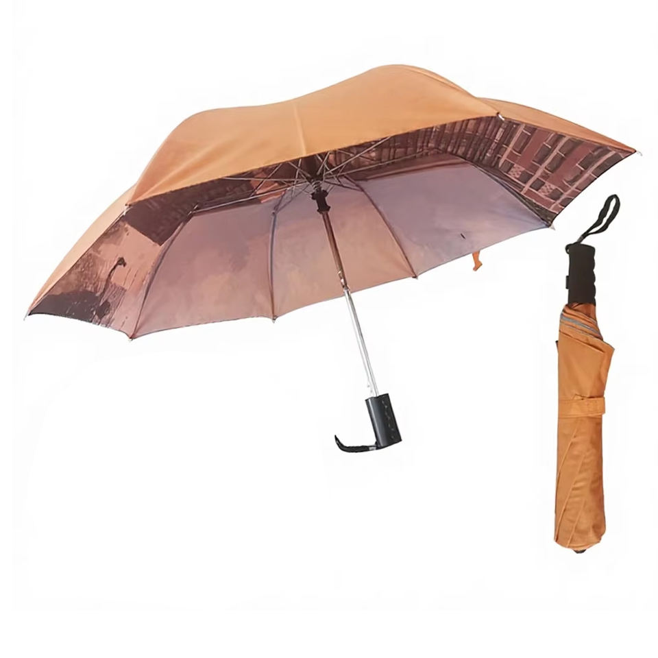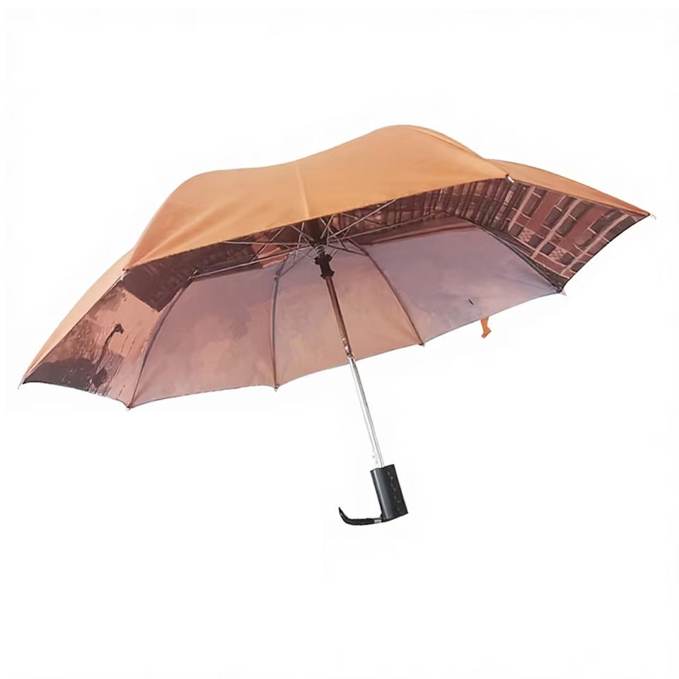 Paraguas Plegable Manual de Doble Capa, Impresión Digital, Reforzado, para Sol y Lluvia, Recuerdo de Eventos, Estilo Europeo Clásico, Metálico