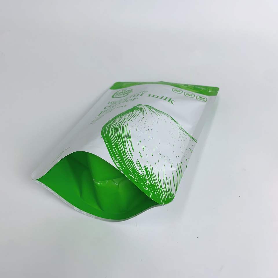 Bolsa de pie de grado alimenticio a prueba de olores de impresión digital con Ziplock en la parte superior para bolsas de contenedor grande de leche de coco