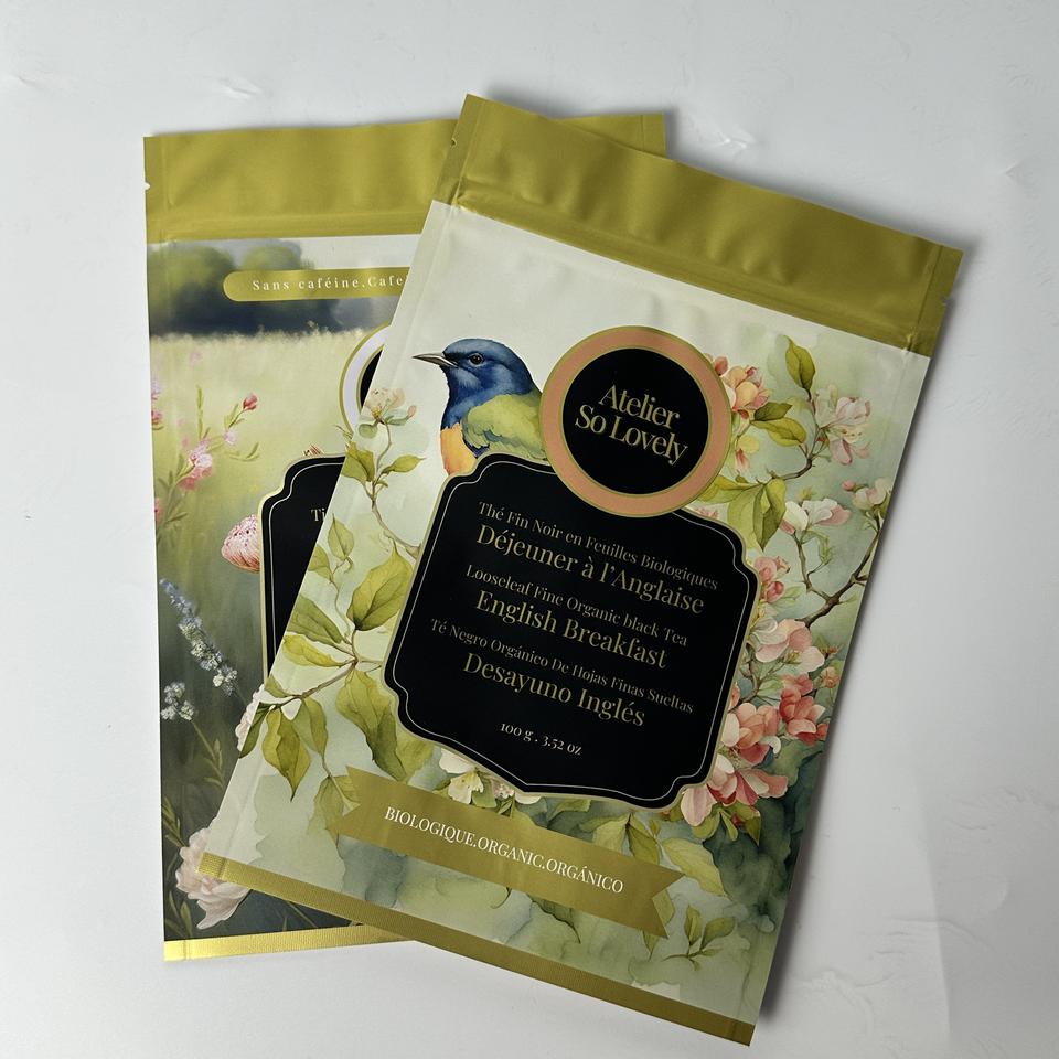 Bolsa de Pie con Cierre Zip para Envasado de Café y Té, Impresión Digital, Bolsa de Mylar de Grado Alimenticio con Cierre Zip