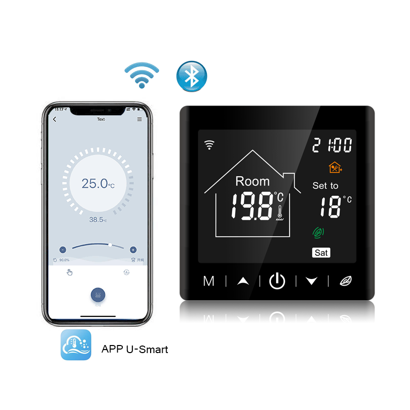 Temperature setting:5-60℃ with built-in sensor; Outer floor sensor optional;
