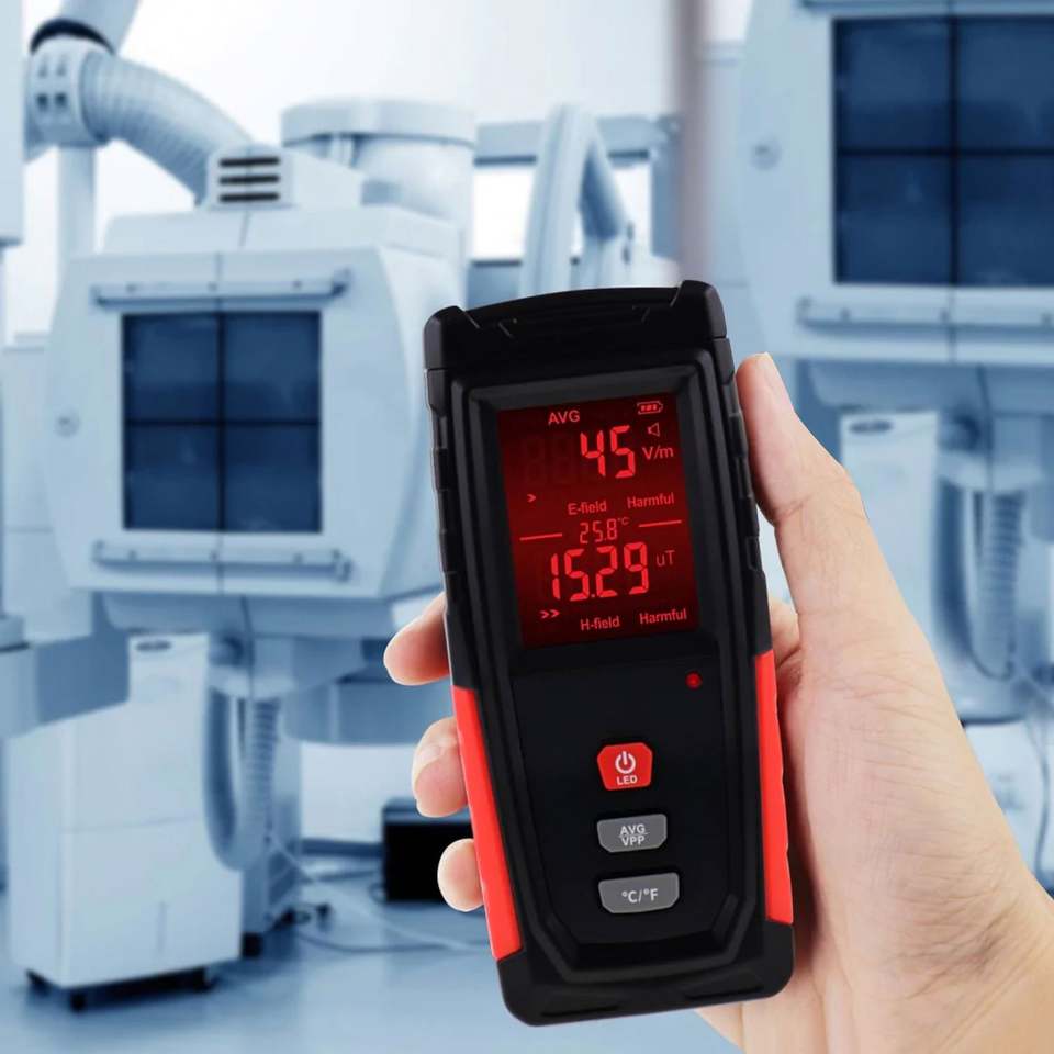 Medidor Digital de Radiación, Probador de Campos Electromagnéticos, Pantalla a Color, Bloqueo de Datos, Funciones de Alarma, Unidades Conmutables