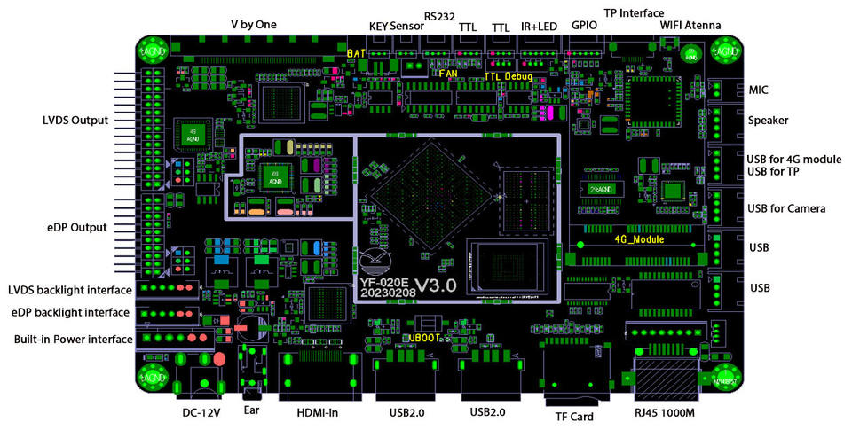 Placa Madre Digital Signage 12V Rk 3288 3562 3566 3568 3588 3399 Android Arm Linux