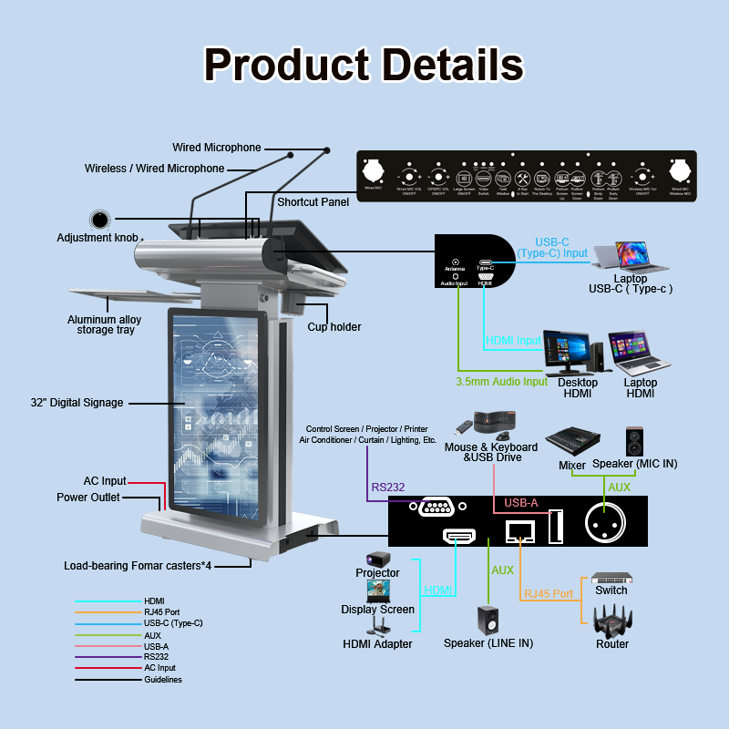 Application:Smart Podium Lift Rotatable Interactive Screen