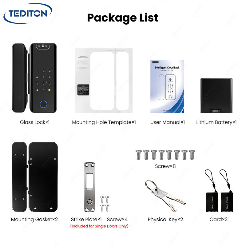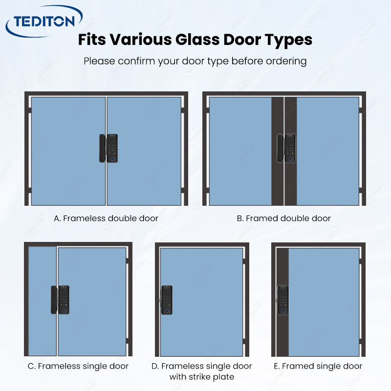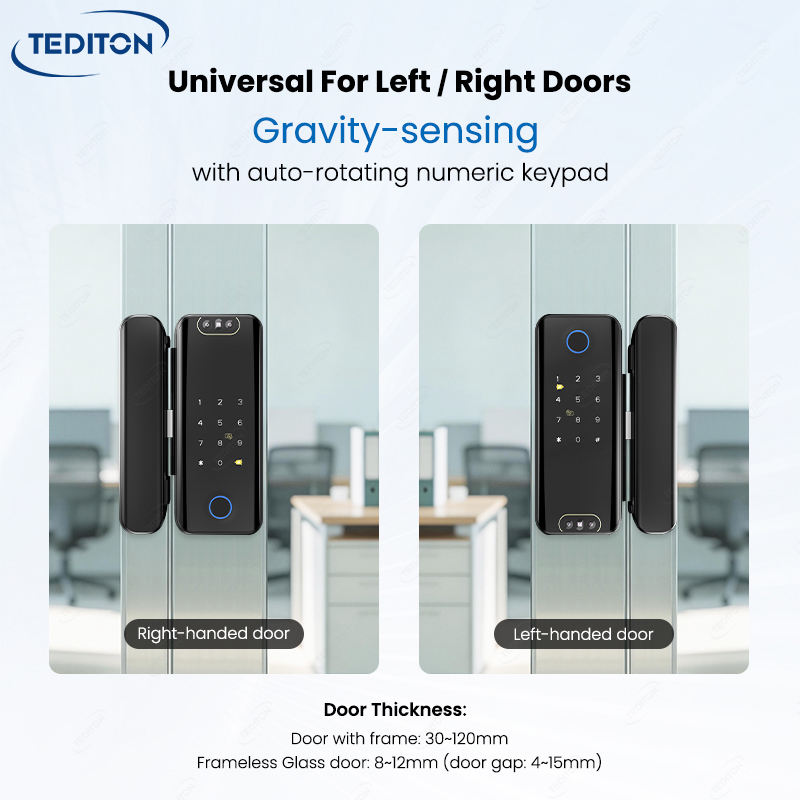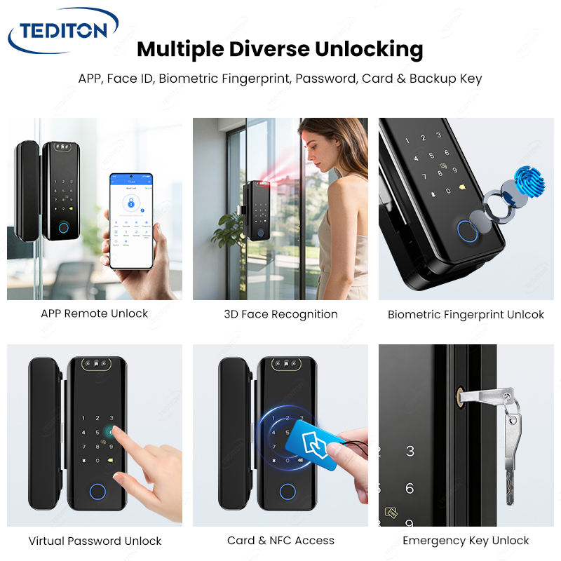 Cerradura Inteligente Digital TTlock con Control de Acceso Electrónico, Reconocimiento Facial y Huella Dactilar, Doble Puerta Corredera de Vidrio para Oficina y Hotel