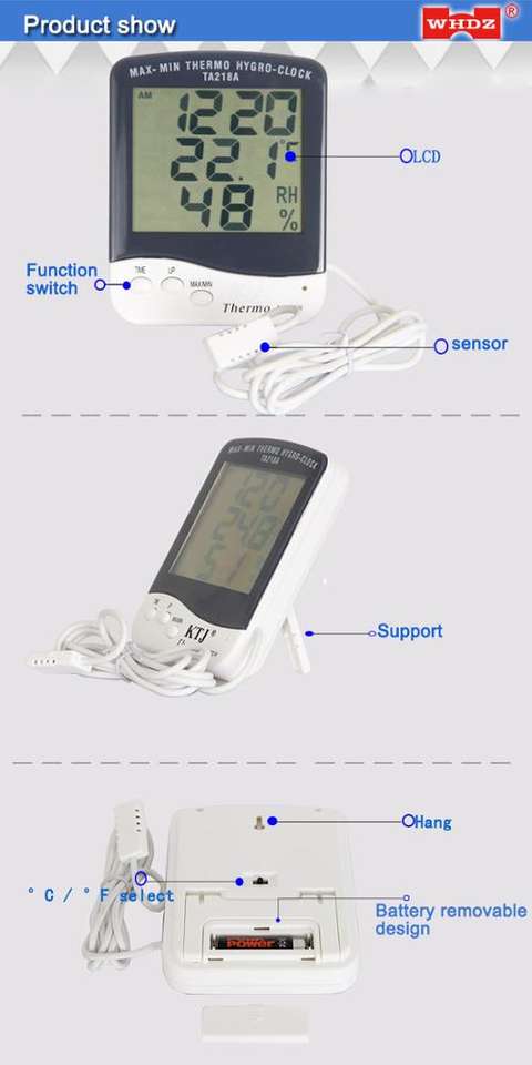 Termómetro Digital con humedad y cierre con pantalla Digital Lagar, higrómetro TA218A