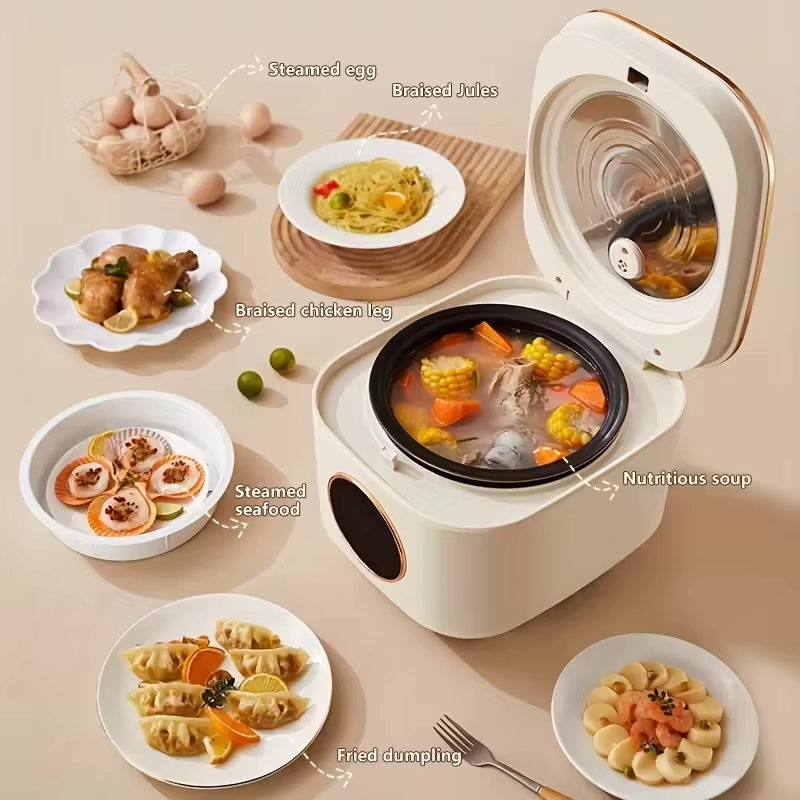 Olla Arrocera Inteligente Automática Multifunción Mini de 5L y 1000W con Pantalla LED y Control de Temporizador Digital, Antiadherente