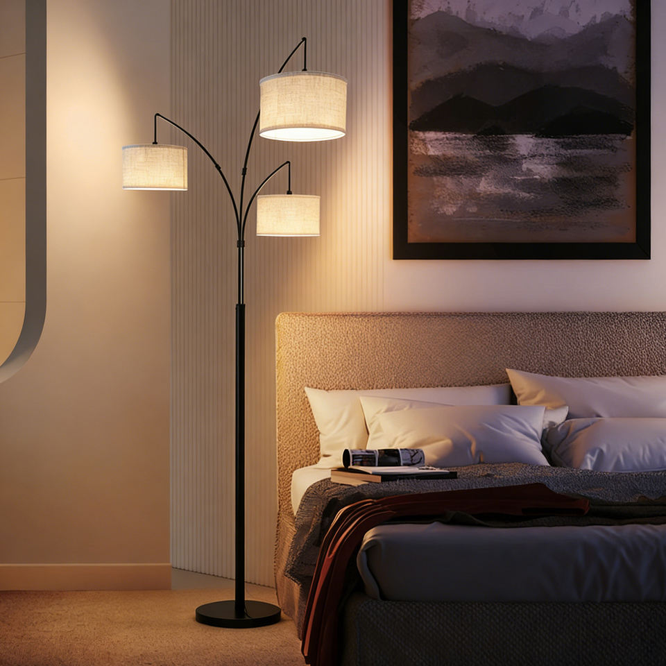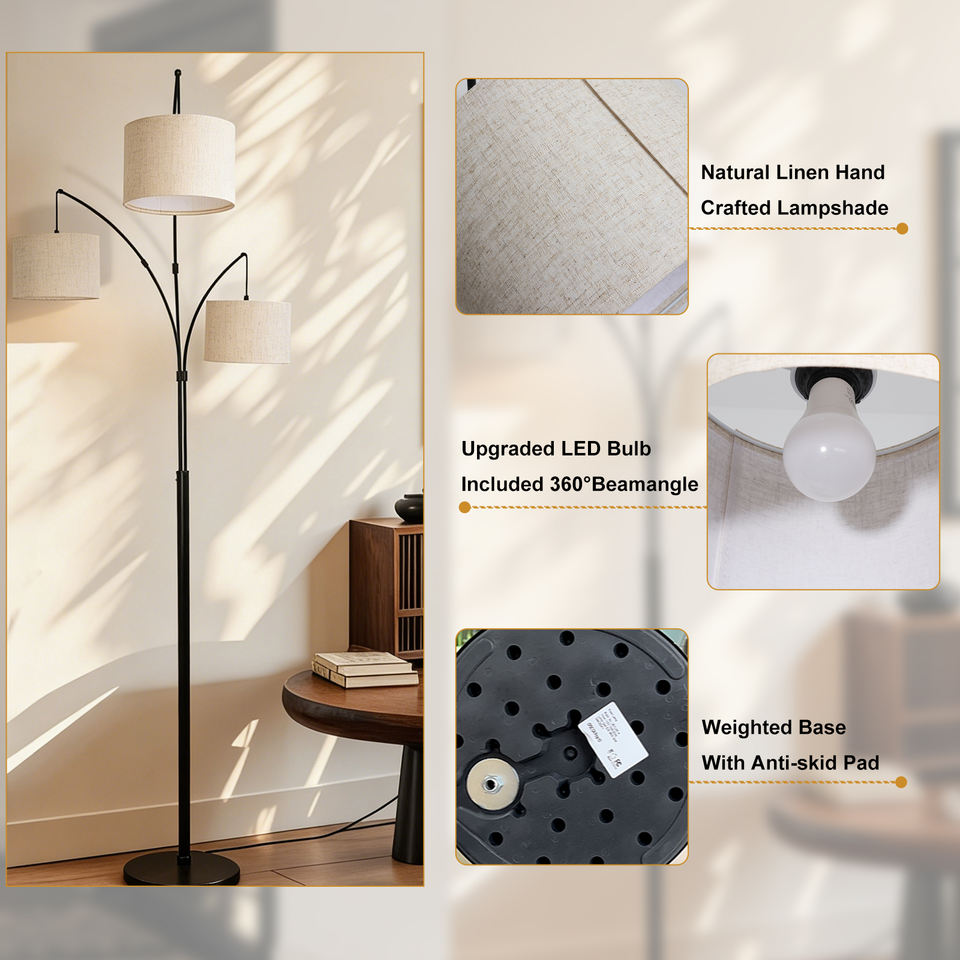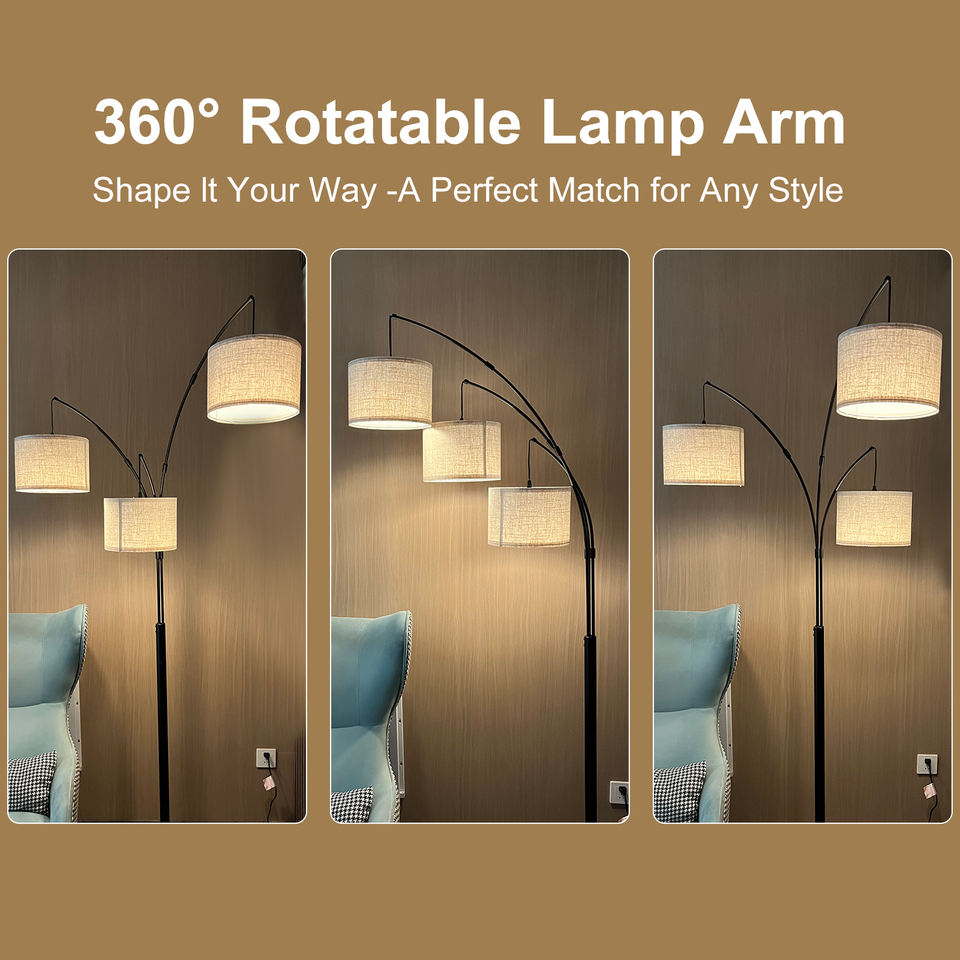 Lámpara de Pie de Arco con 3 Bombillas LED Regulables, Estilo Moderno de Mediados de Siglo, Interruptor Giratorio, Base Resistente, CRI 90, Alto Brillo para Sala de Estar