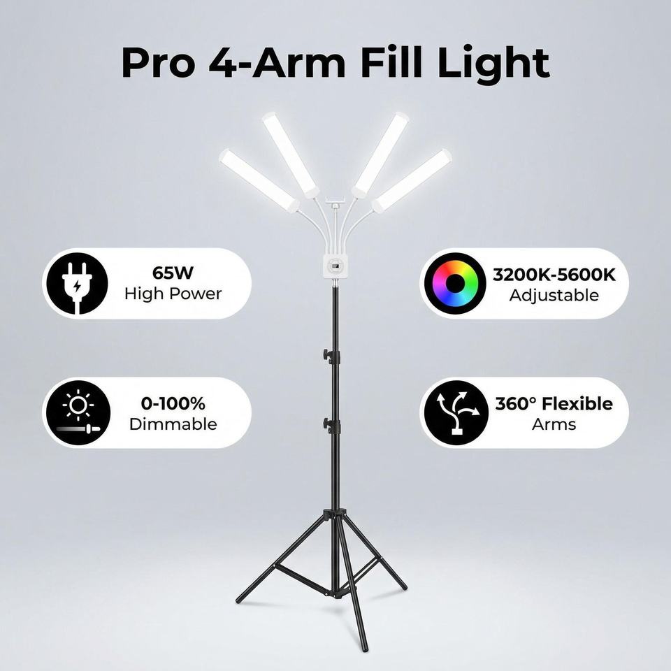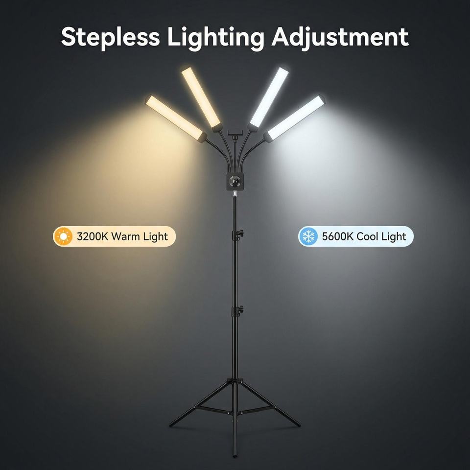Lámpara LED de Cuatro Brazos Atenuable para Extensiones de Pestañas, Lámpara Profesional para Salón de Belleza, para Cejas, Uñas, Tatuajes, con Soporte