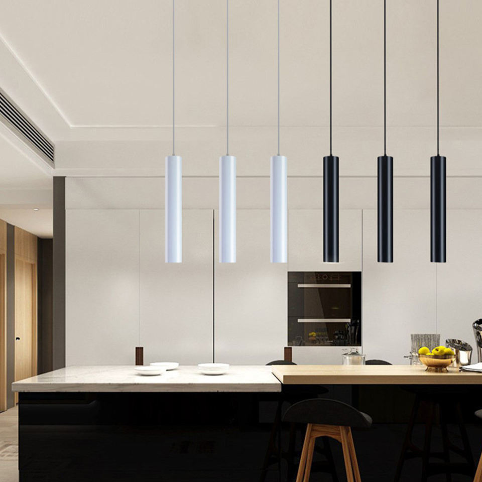 Lámpara Colgante LED Regulable, Lámpara de Tubo Largo, Decoración para Isla de Cocina, Comedor, Tienda, Bar, Lámpara de Tubo Cilíndrico, Lámpara de Cocina