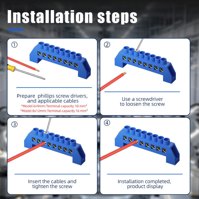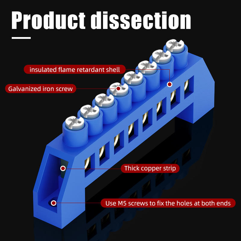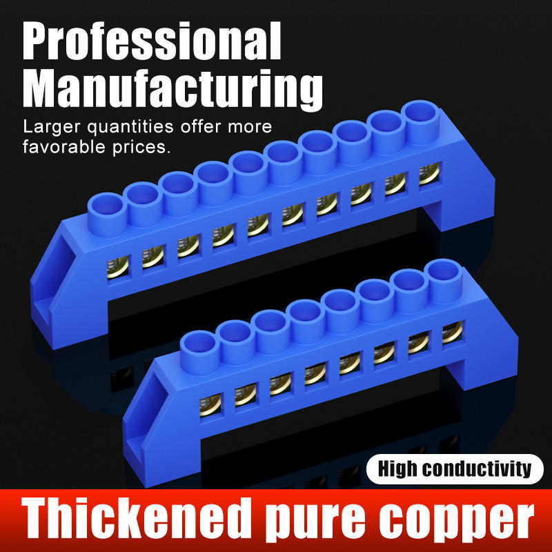 Bloque de terminales de riel Din con tipo de puente de tira de tierra neutra de 10 orificios para cableado neutro Caja de distribución de 6 9 10 orificios