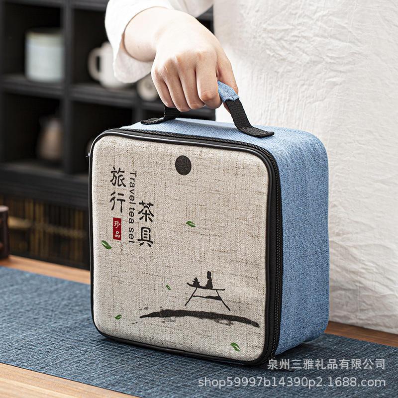 Juego de té portátil Ding Kiln, juego de té Kung Fu de cerámica con tetera y cuatro tazas, regalo de viaje, juego completo, forma redonda