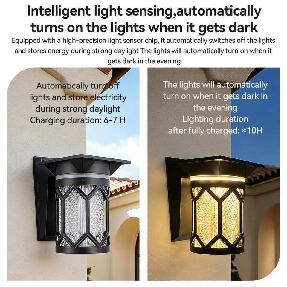 Características::Alimentado por energía solar, 3 colores cambiables, sensor de luz, resistente al agua.