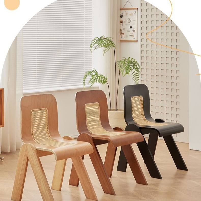 Silla de Comedor con Respaldo de Madera Maciza y Asiento de Ratán, en Color Madera Natural, Nogal Negro y Cerezo, para Dormitorio Infantil u Oficina