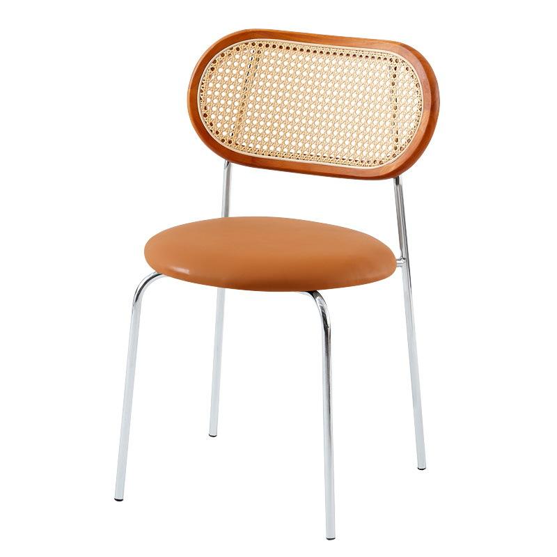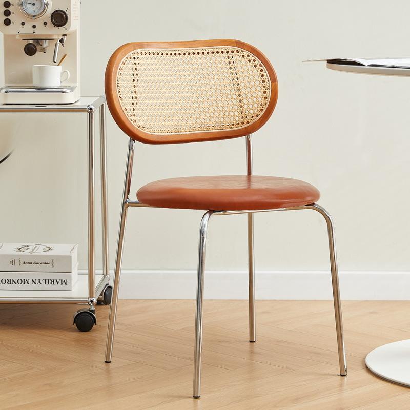 Silla de comedor con respaldo de ratán y asiento de cuero para uso en el comedor del hogar