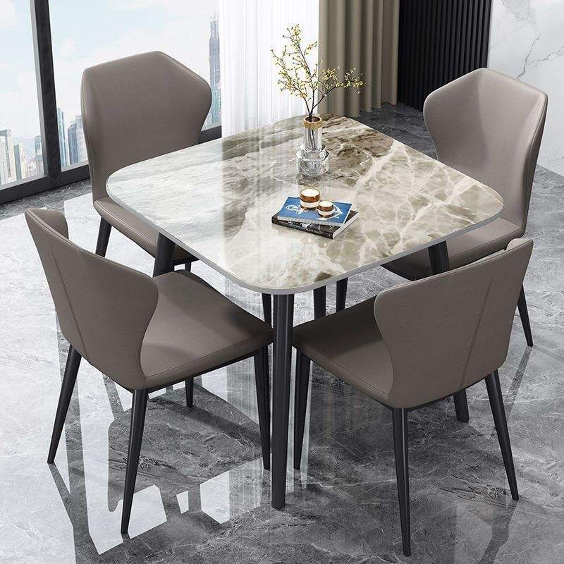 Juego de mesa y sillas de comedor de 4 piezas, moderno, con superficie de mármol, que ahorra espacio, para el hogar, apartamento pequeño, comedor