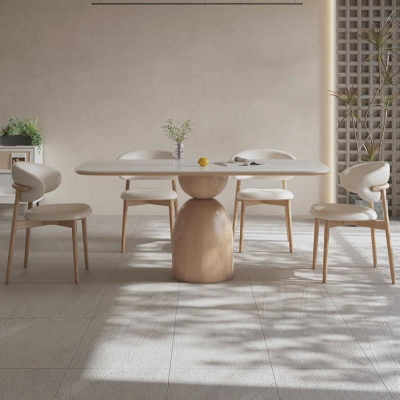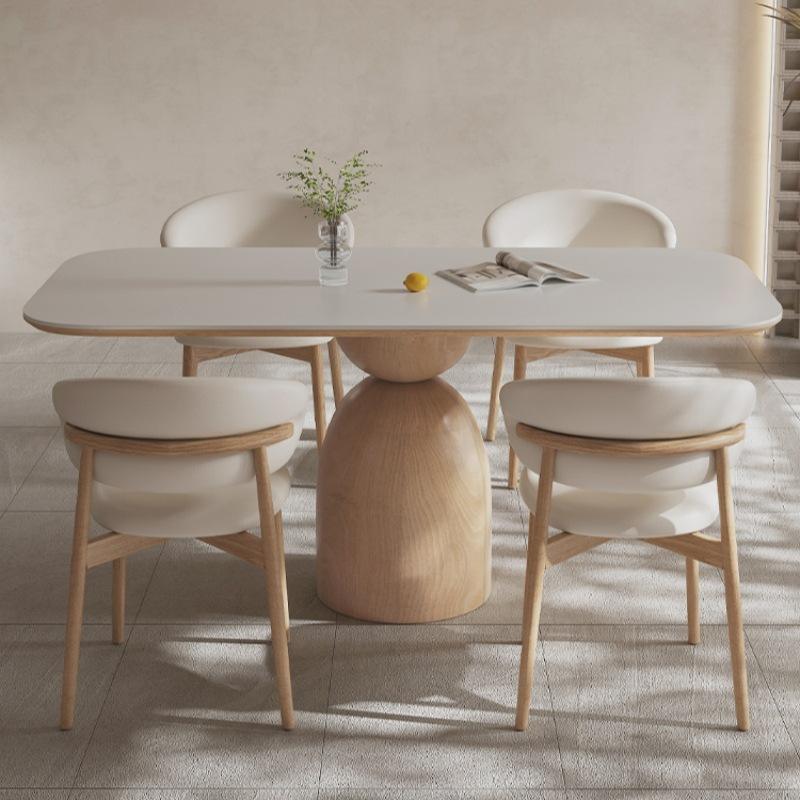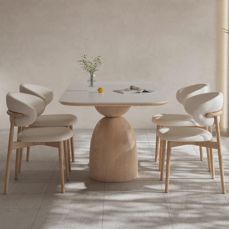 Juego de Mesa y Sillas de Comedor, Blanco Mate, Madera Maciza, Respaldo Sólido Moderno, Estilo Nórdico Minimalista para Comedor