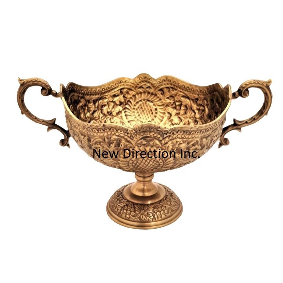 Mesa de comedor decorativa estilo árabe dorado manijas de cuenco decorativo fruta comida servir cuenco Catering ensalada servir cuenco de Metal