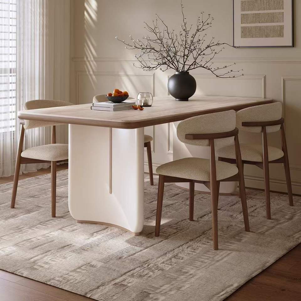 Juego de mesa de comedor de madera maciza extensible, diseño nórdico minimalista para comedor