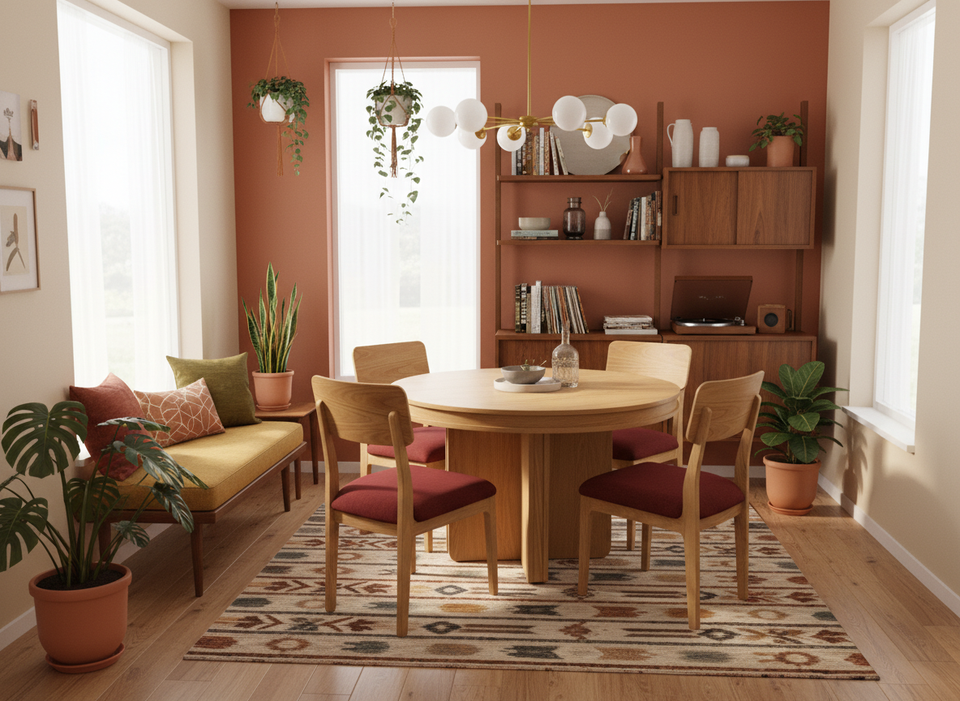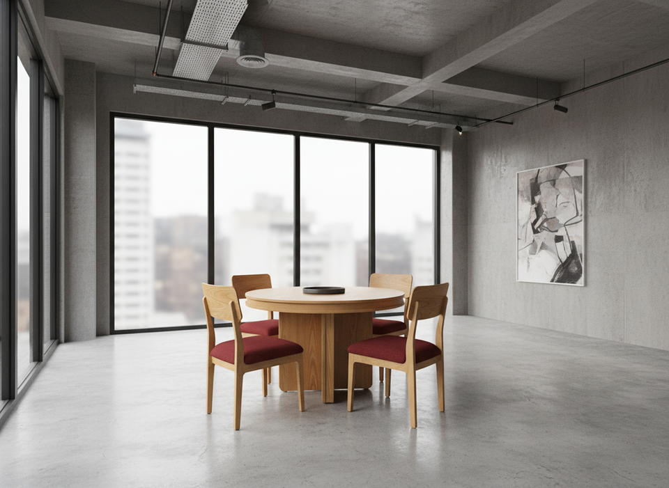 Juego de Mesa de Centro Redonda Moderna con 4 Sillas de Madera de Fresno Maciza y Chapa de MDF, Ligero y Duradero