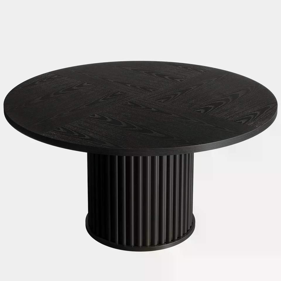 Mesa de Comedor con Base Metálica Acanalada Resistente, Mesa Redonda de Madera para Cocina