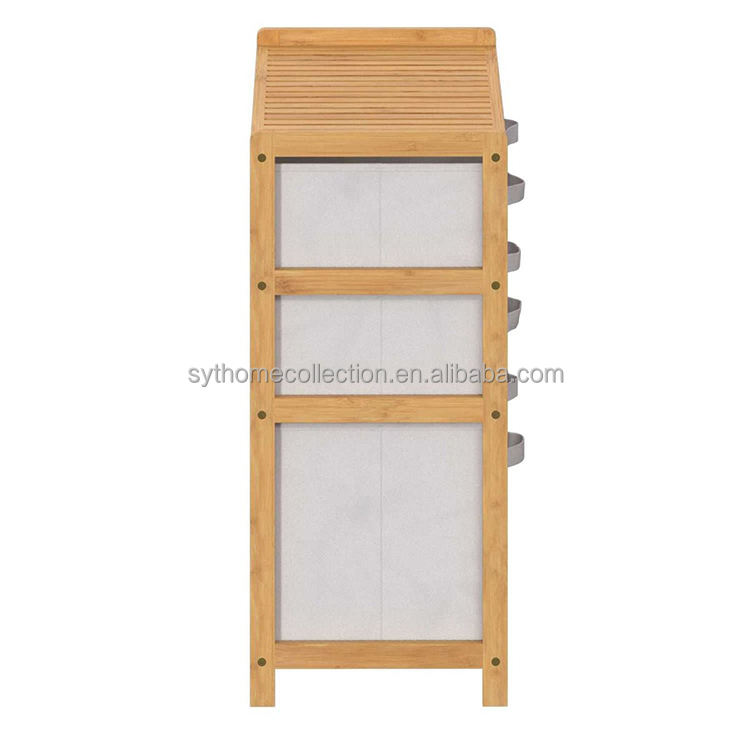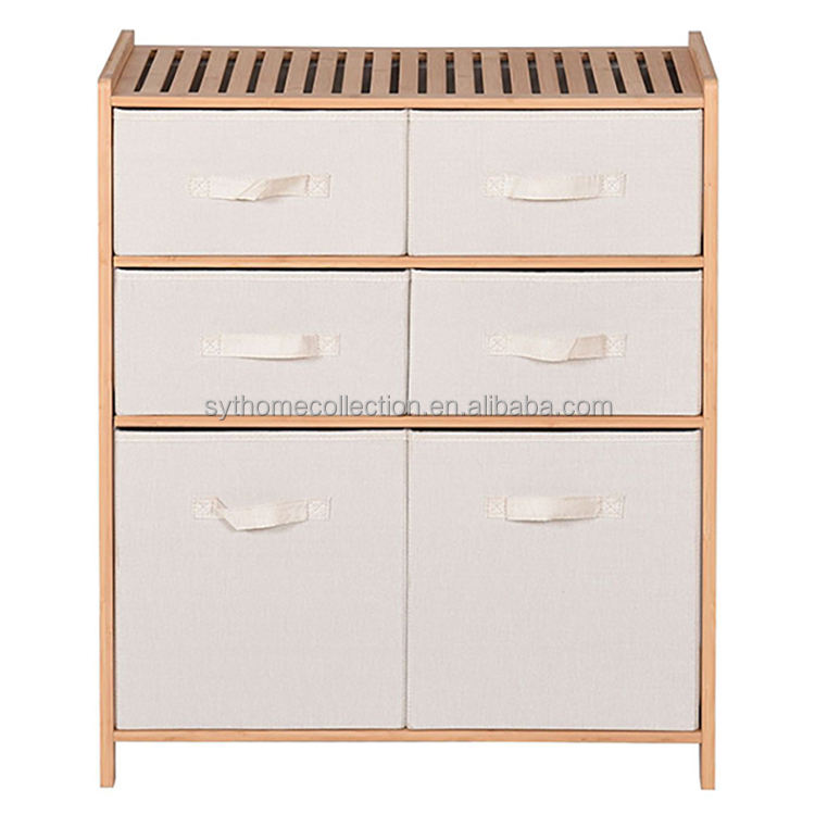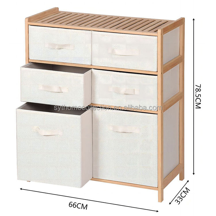 Mueble de Almacenamiento de Bambú SYT de Fácil Limpieza para Cubertería, Organizador de Cajones con Contenedores de Tela para Zona de Preparación y Rincón de Comedor