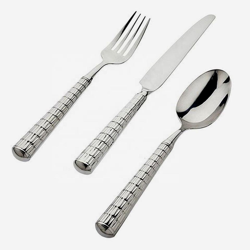 Vajilla Diseño chino Cubiertos Diseño de golpes Mango final Lujo Acero inoxidable Banquete DE BODA Cubiertos pulidos de plata